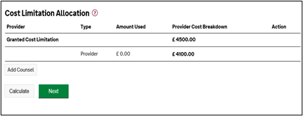 The Counsel member is now visible in your Cost Limit Allocation table. You should agree the cost limit you are going to apportion to Counsel, with them, up front.