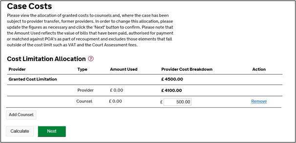 This guide explains how to assign Counsel to a case and how to allocate a proportion of your existing cost limit to Counsel.
