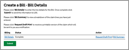 NOTE: A document/evidence request will be sent to the person who submitted the bill. This must be processed before the LAA can process the request.
