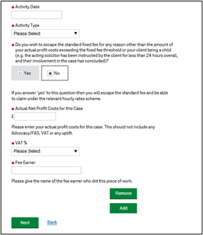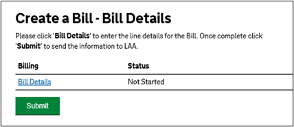 Enter the details of the bill line. Use the drop-down list to select the relevant activity type.