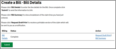 NOTE: A document/evidence required action will be sent to the person who submitted the bill. This must be processed before the LAA can process the request.