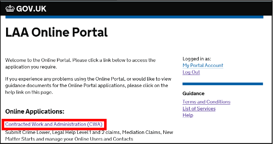 Click on the Contracted Work and Administration link on your list of applications. You will be taken to the CWA Navigator.