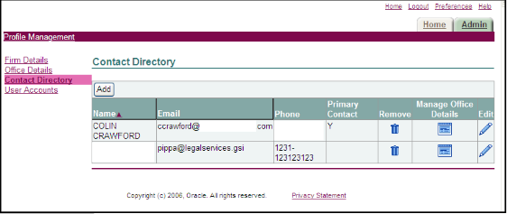 NOTE: Solicitor advocates will have been set up as a contact under their own name automatically, so there will be at least one contact visible in the directory.