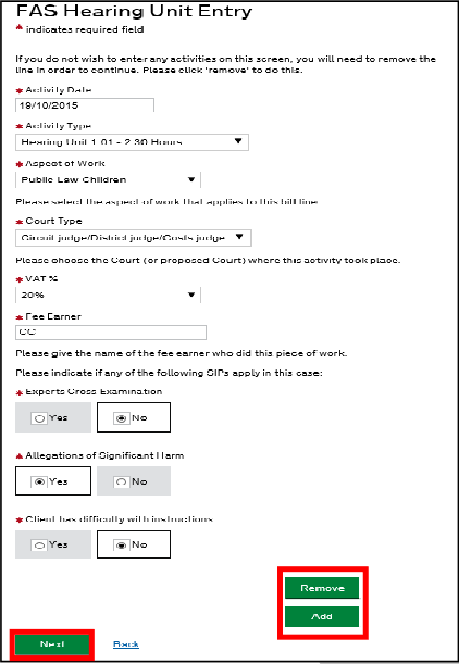 Complete the FAS / FGF Non Hearing Unit Entry details.