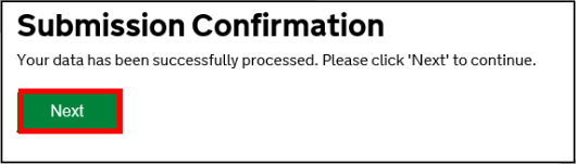 The Submission Confirmation screen is now shown, click Next to return to the Case Statement of Account screen.