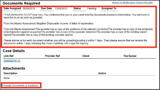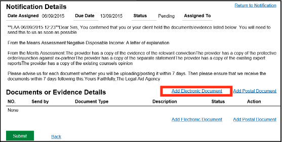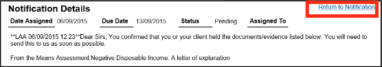 Now documents are attached, scroll to the top of the screen and select Return to Notification.