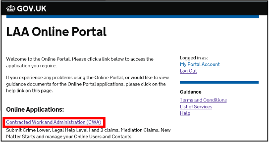 Log in to the LAA Online Account. User access to CCMS within your organisation is controlled through the CWA application.