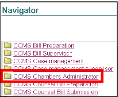 Each counsel will have a username set up under his or her name as part of their registration on CCMS. They will be given CCMS Counsel (giving full access to CCMS to prepare and submit bills) and CCMS Chambers Administrator which gives administrative access.