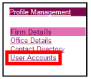 User Accounts will display all existing users under your account. Check that the user has not already been set up on the system to avoid duplication.