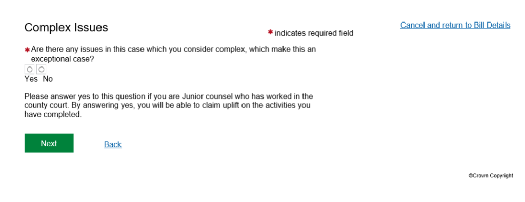 Counsel Fees should be claimed at Codified Solicitor Rates. CCMS will default to the applicable rates. CCMS will ask if any complex issues are present in order for the relevant screens to be presented.