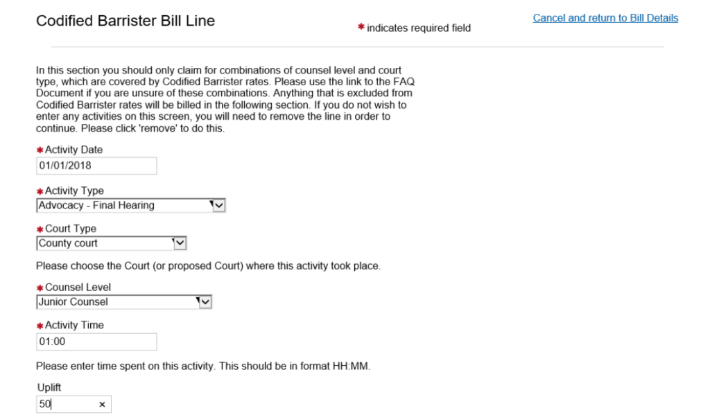 Counsel bill should only be submitted in conjunction with the Solicitor’s final claim being submitted. Premature claims will be rejected by LAA, which can lead to delays in payments for both counsel and solicitors.
