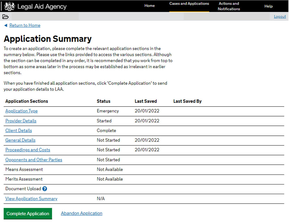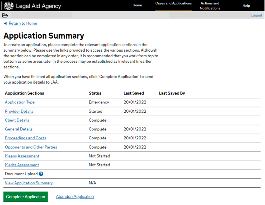 The Application Summary screen will now be updated to show a Complete status against General Details.