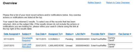 You will receive the action to upload the evidence in the usual way. In this example, you can see that the document required action are assigned to Counsel one.