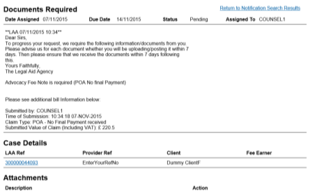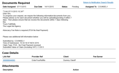 The first document you can see additional information which confirms who the POA was Submitted By, the Time of Submission, the Claim Type and the submitted Value of Claim (including VAT).