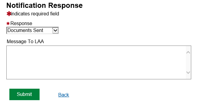 IMPORTANT: Without putting a response in this field the LAA will not receive your documents and will result in a processing delay. Important information regarding the return and destruction of post documents.
