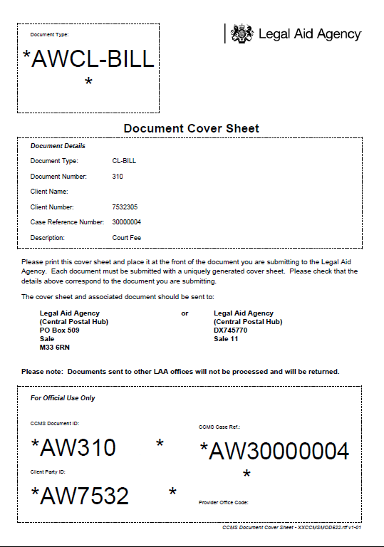 This sheet allows your evidence to be matched up to the case it relates to on CCMS.