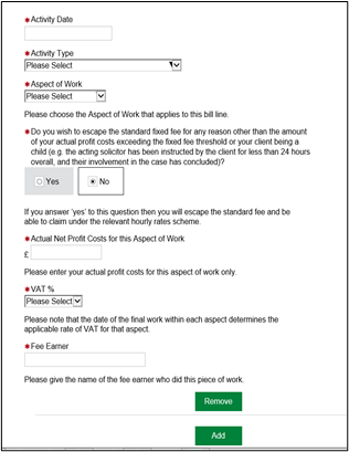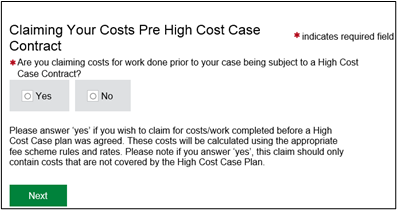 NOTE: If you are not asked this question you must contact the LAA to make sure that the case is flagged as a high cost case.