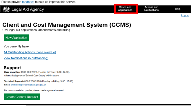 From the homepage select Cases and Applications and search for the case you wish to amend.