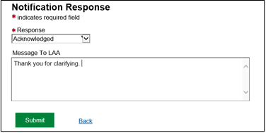 NOTE: A notification will be sent out once the query has been responded to. If the response resolves the query you need to close the notification down by selecting the Acknowledged option.