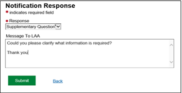 NOTE: Only Supplementary Questions will be responded to by the Legal Aid Agency. Any Acknowledged questions will be automatically closed down without any response.