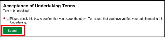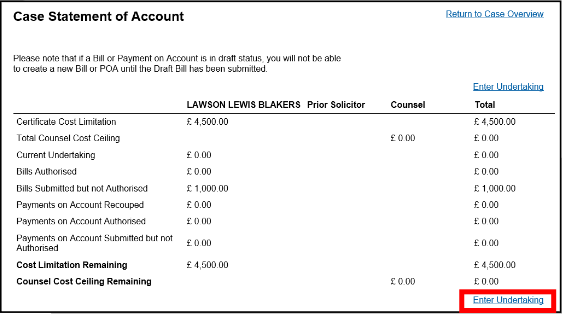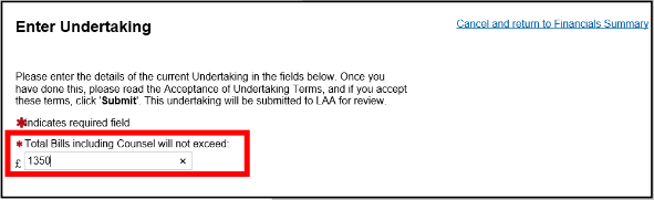 From the Enter Undertaking screen, enter the details of the current Undertaking.