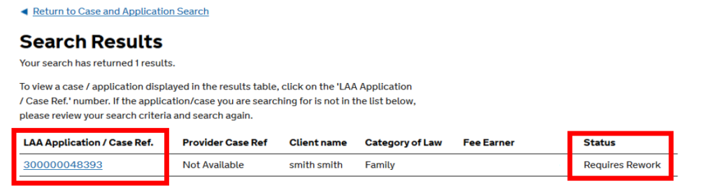 NOTE: The status of the case is currently Requires Rework. This indicates that the application has been rejected. The status of the case may change before you receive a notification from the LAA as our letters are occasionally subject to a review process.