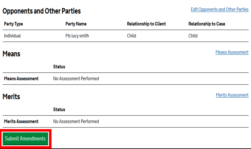 NOTE: If the status of the means or merits assessment shows as requires reassessment this does means that you will need to revisit this area.