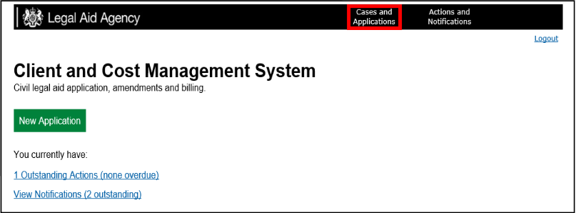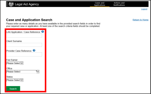 NOTE: You can also use your own reference if added at the initial application stage (via the Provider Details section), instead of using the LAA case reference when searching in CCMS.