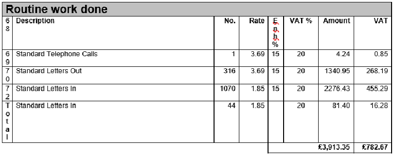 - a description of all routine work undertaken, such as standard telephone calls and standard letters in / out