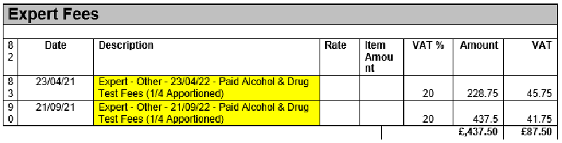 - a description of the work, such as Expert – other – (date) – paid alcohol and drug test fees