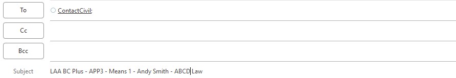 If you wish to request a review of a decision made by the LAA under this process, please submit your appeal via email to contactcivil@justice.gov.uk within 14 days of the decision being communicated. Please ensure the subject line of the email is titled LAA BC+ – Appeal – client’s name – firm name.