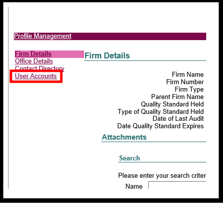 - Click on User Accounts on the Profile Management page. This is located in the top left hand corner.