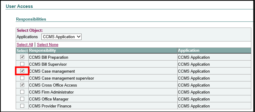 NOTE: Only the CCMS Firm Administrator role can add or change existing roles. This role can be allocated to more than one person within your firm by following the process above.