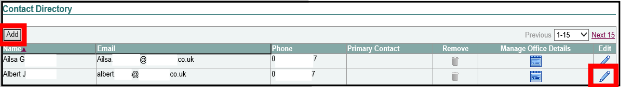 NOTE: If your contact does exist, you can click the edit button next to them and skip to the Manage Office Details step.