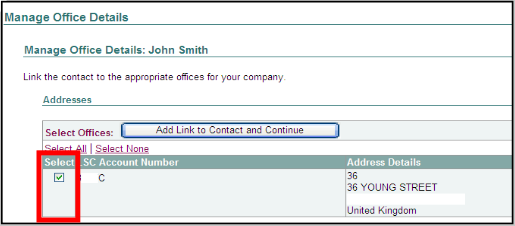 You will proceed to the Manage Office Details screen. Tick the box next to the main office the contact is based at.
