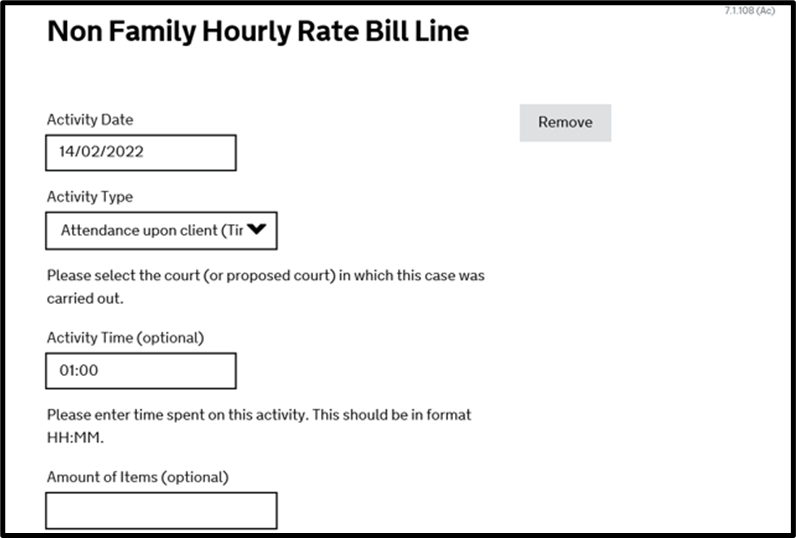 Enter the court type where proceedings concluded and if there are multiple courts involved. You will reach the below screen for Non-Family Billing for solicitor work only.