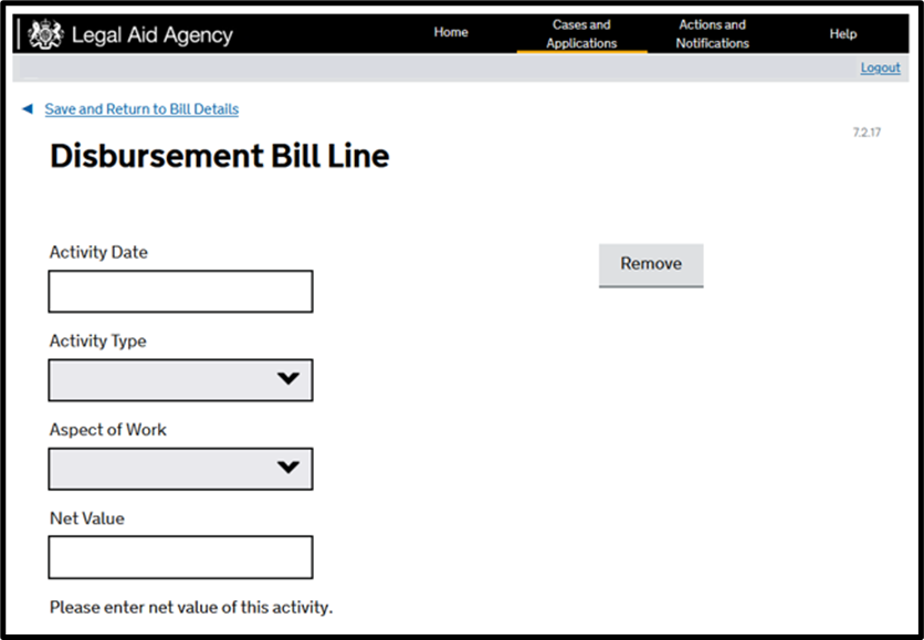 Once an Outcome task has been submitted you will have the option to create and submit a Final Bill. DAPO’s in the Magistrates’ Court will attract hourly rates. CCMS will generate the applicable rates so you will not enter these directly into CCMS.