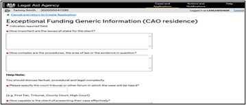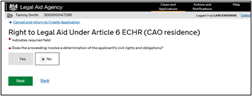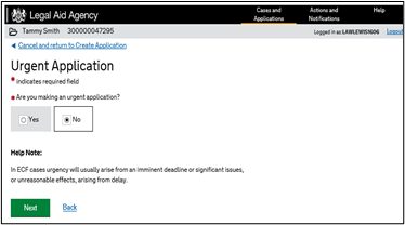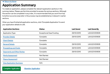 NOTE: Once the application is completed and submitted, a document/evidence request will be sent to the primary contact. This must be processed before the LAA can process the application.
