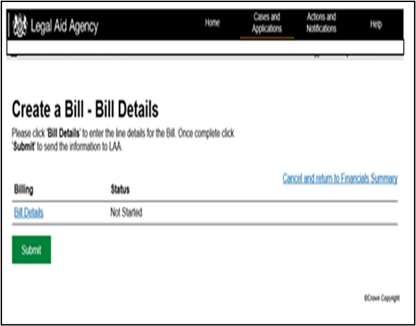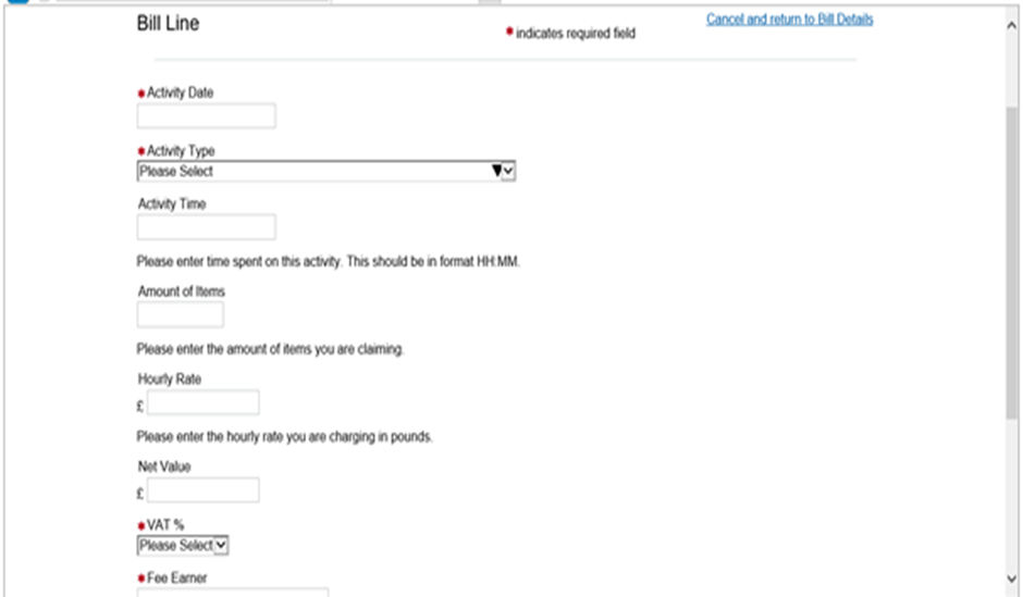 - Provider Bill Type – Solicitor Final from the drop-down (or interim if applicable)