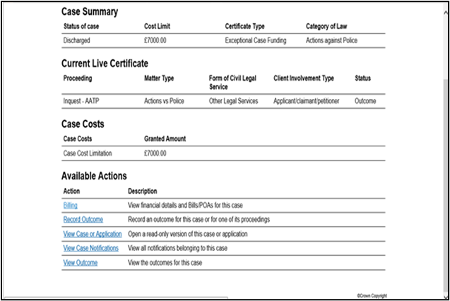If Outcomes have been submitted then the proceedings showing will be at a status of ‘Outcome’.