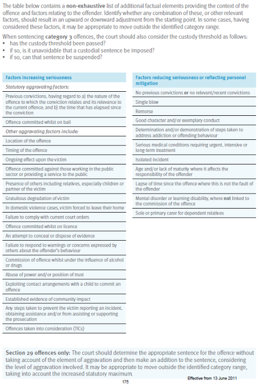 10. Magistrates and District Judges MUST follow the guidelines or give their reasons if they seek to depart from them. Most aggravating and mitigating features will appear in the guideline but the list is not exhaustive.