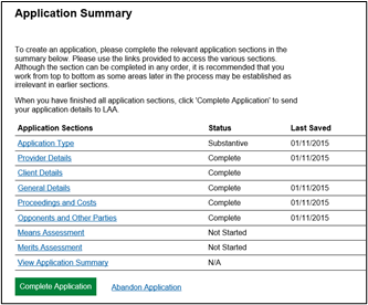 NOTE: If you have previously started the clients Means Assessment the Forward button can be used to skip quickly to the next unanswered question.