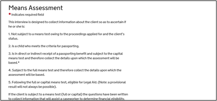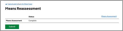 You can also carry out a reassessment by searching for the case or application that requires a means reassessment. In addition, you may be asked to perform a means reassessment when making certain amendments.