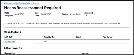 You will receive a message from the LAA asking you to carry out a means reassessment along with the reason why this is required.