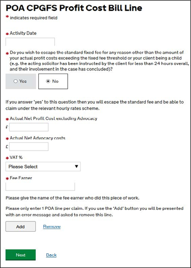 For profit costs you must wait 3 months from the grant of the certificate and you can claim four amounts within a 12 month period. You will still only get paid up to 80% of these costs. In CCMS you’ll enter 100% of the profit costs incurred to date and the system will calculate the reduction before payment.