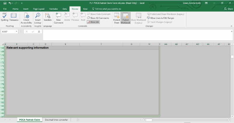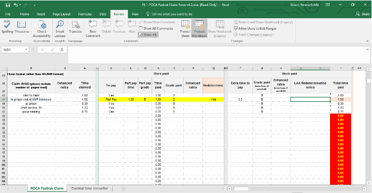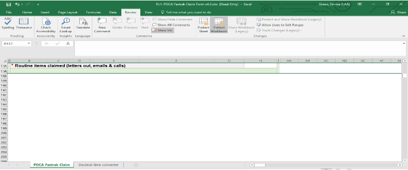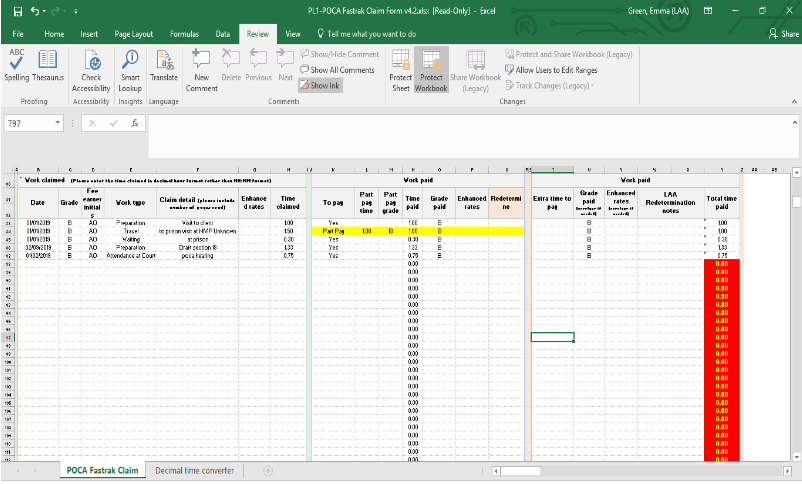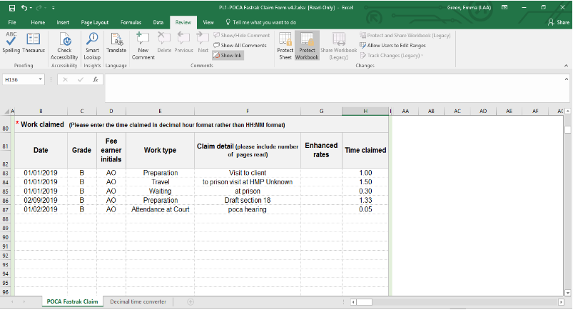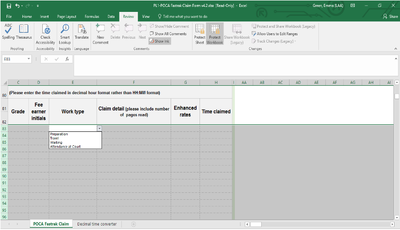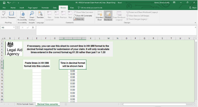 NOTE: A decimal time converter can be found at the final tab on the claim form.