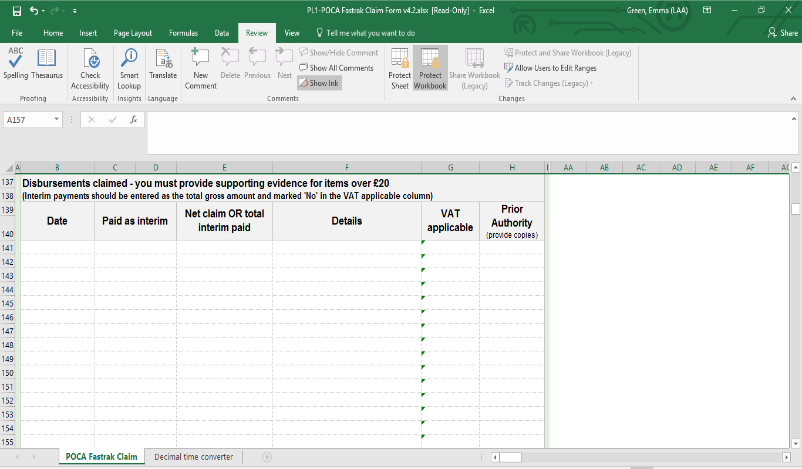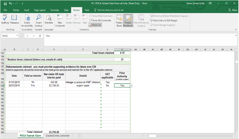 Any interim payments that you have already received must be recorded as paid as interim to avoid your claim being returned. Provide the total amount you were paid. You should choose Yes in column C and enter the full amount received in column E. Column G will automatically populate as No. This will then ensure any pre-paid amounts are deducted from the total cost of your claim.