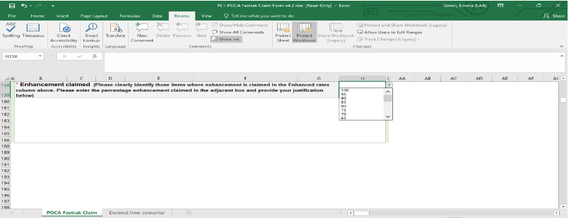 If you are claiming enhanced rates you must specify the percentage of enhancement you are applying for and provide justification for your application.