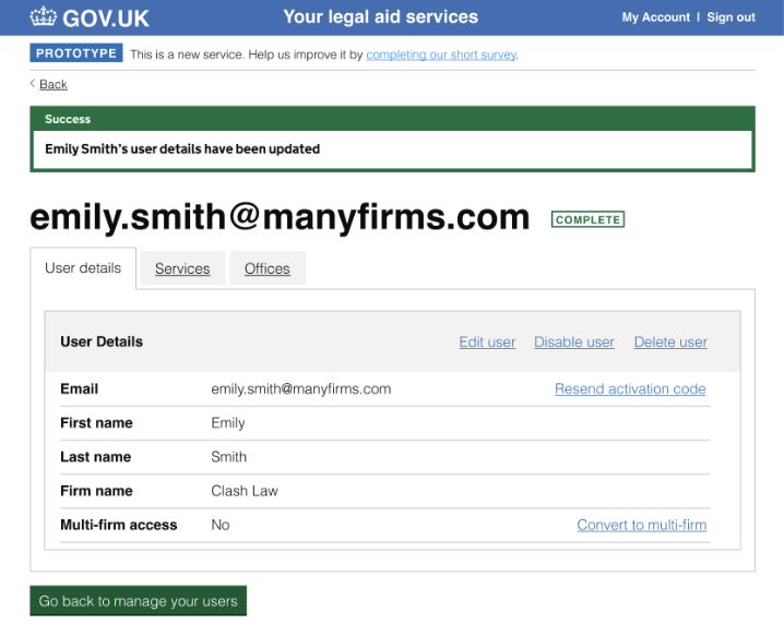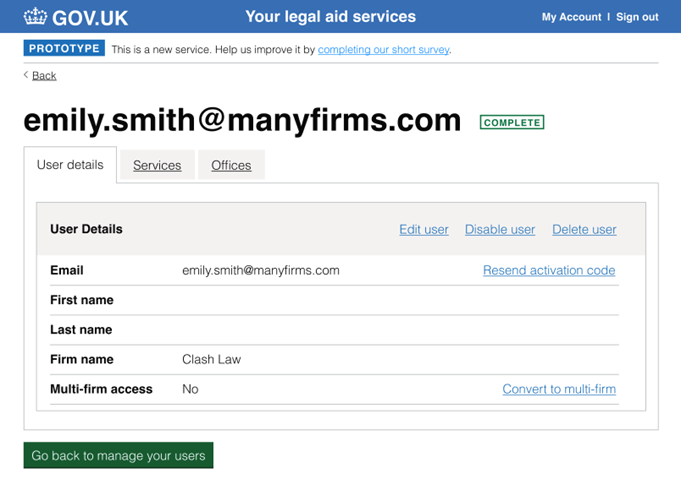As a Provider admin, you are responsible for managing and maintaining your firm’s user accounts. You should delete a user’s access when they leave your organisation or permanently no longer need access to LAA services.