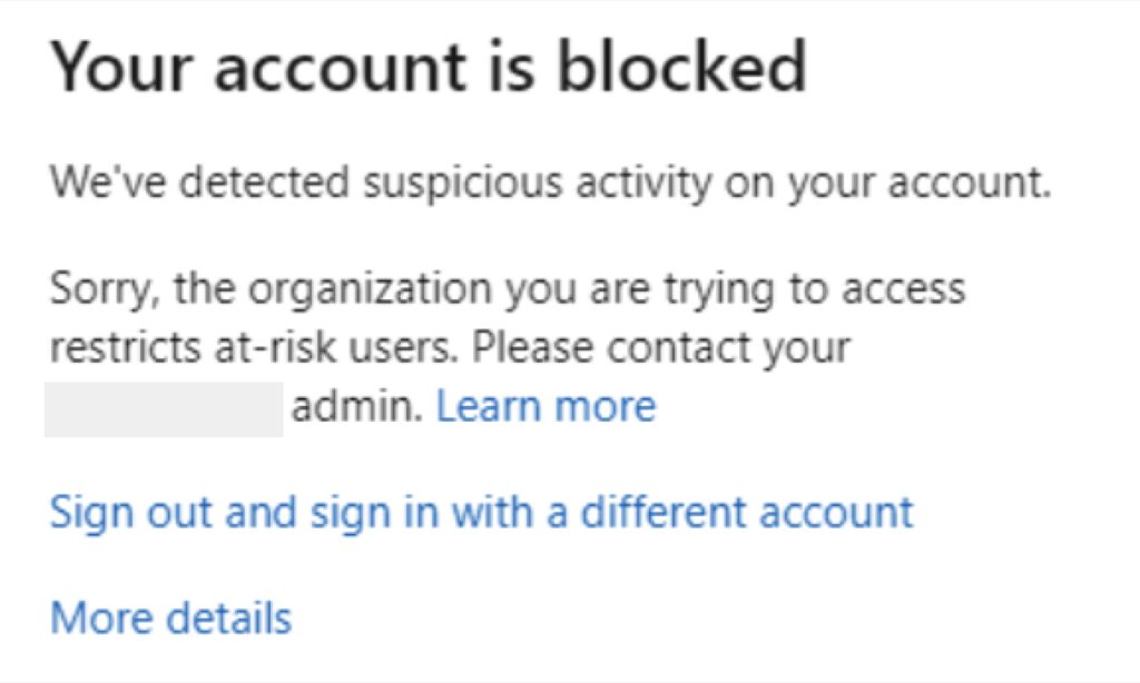 If you’re seeing an error when trying to log in to LAA, it might be because your account has been flagged as “at risk” by your organisation’s identity system, (Microsoft).